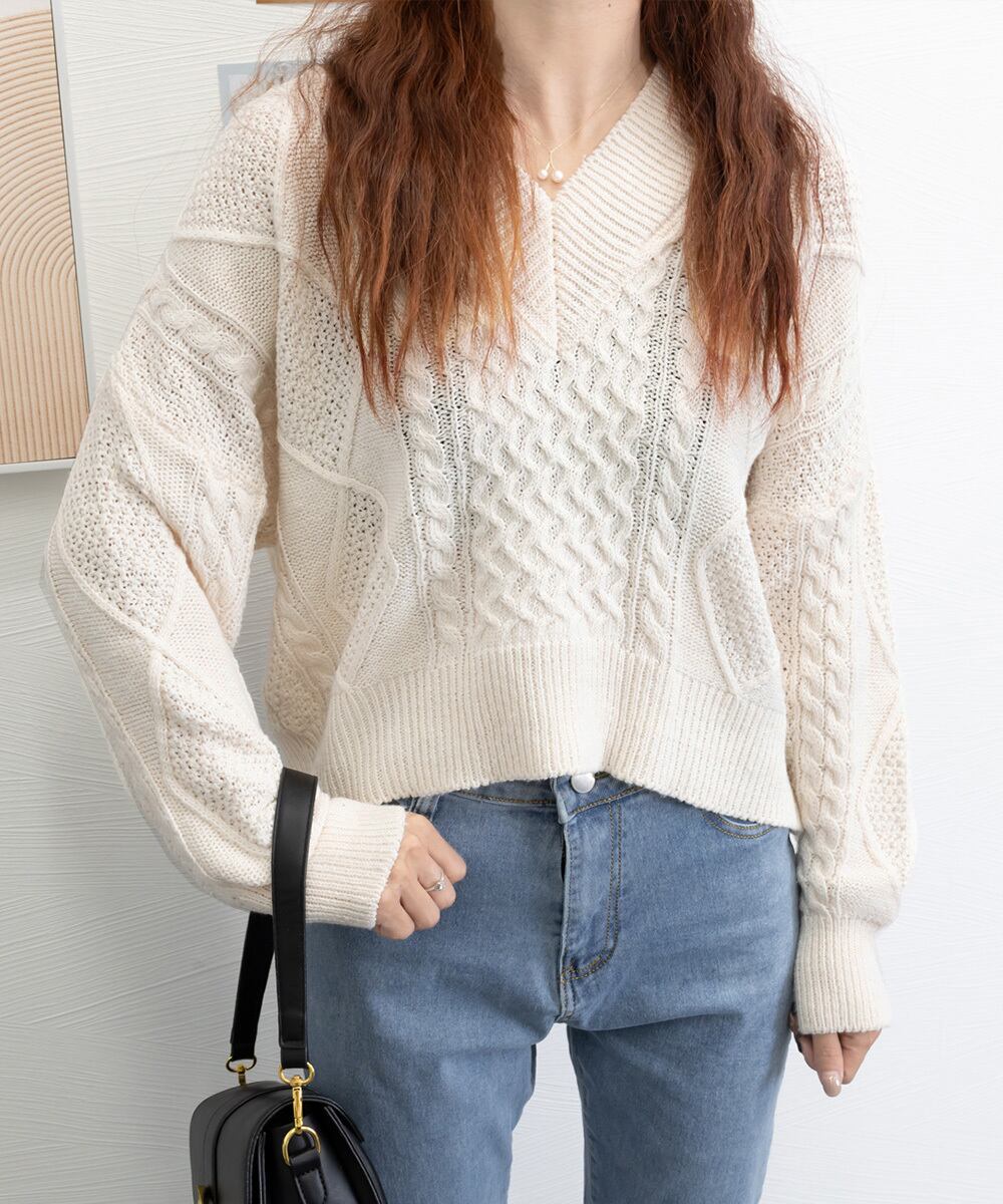 Vネックニットソー レディース 長袖 バックシャントップス 韓国風 ドロップショルダーおしゃれニット カジュアルきれいめ
