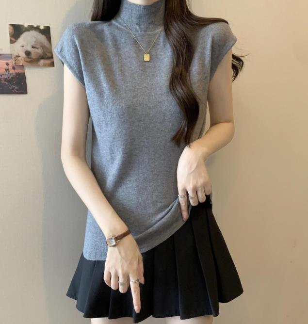 レディース 半袖 ハイネック ニット Tシャツ トップス インナー カットソー
