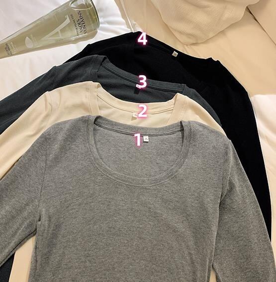 レディース 長袖 丸首 無地 Tシャツ トップス インナー