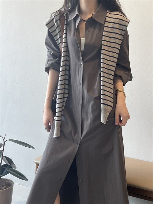 トップス レディース シャツワンピース 無地 3色 韓国風 カジュアル 長袖